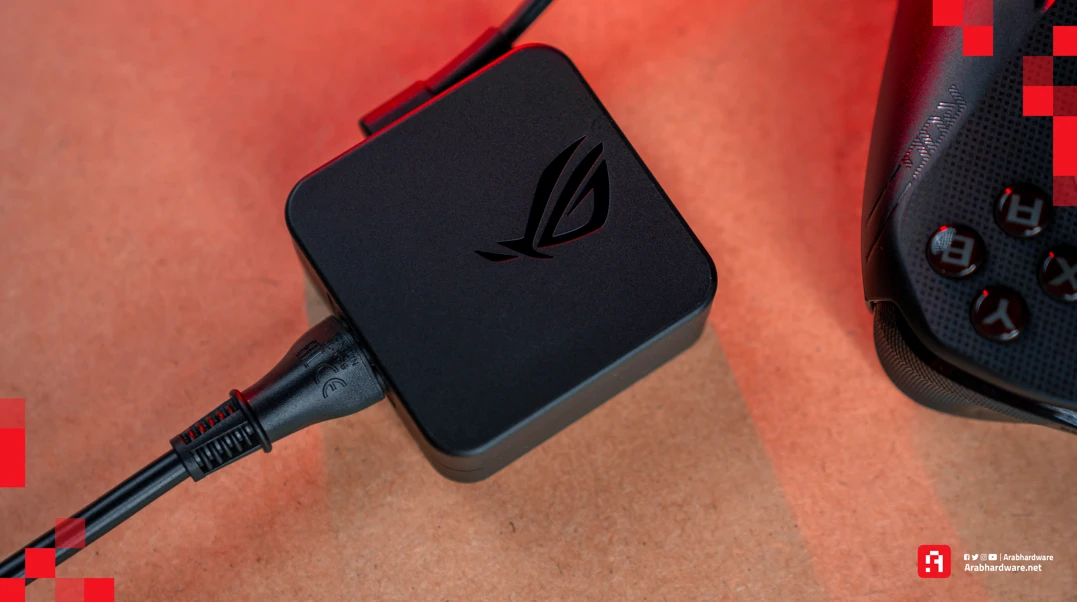 السماعات في الأمام أيضًا ستُعطيك تجربة أقرب إلى الصوت المُحيطي، مع الحفاظ على الجودة العالية. أمّا في الجزء الخلفي من الجهاز، فهناك فتحات التبريد الموجودة بجوار المنافذ التي تعمل على إخراج الهواء الساخن، في حين تعمل الفتحات الخلفية -التي تأتي على شكل شعار ROG- لسحب الهواء البارد، مما يُكوّن نظام تبريد Zero Gravity الذي يعمل في أي وضع للجهاز.