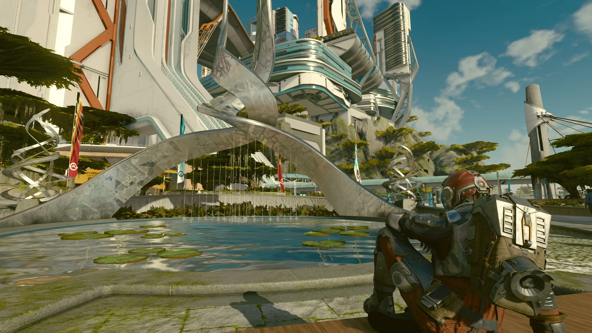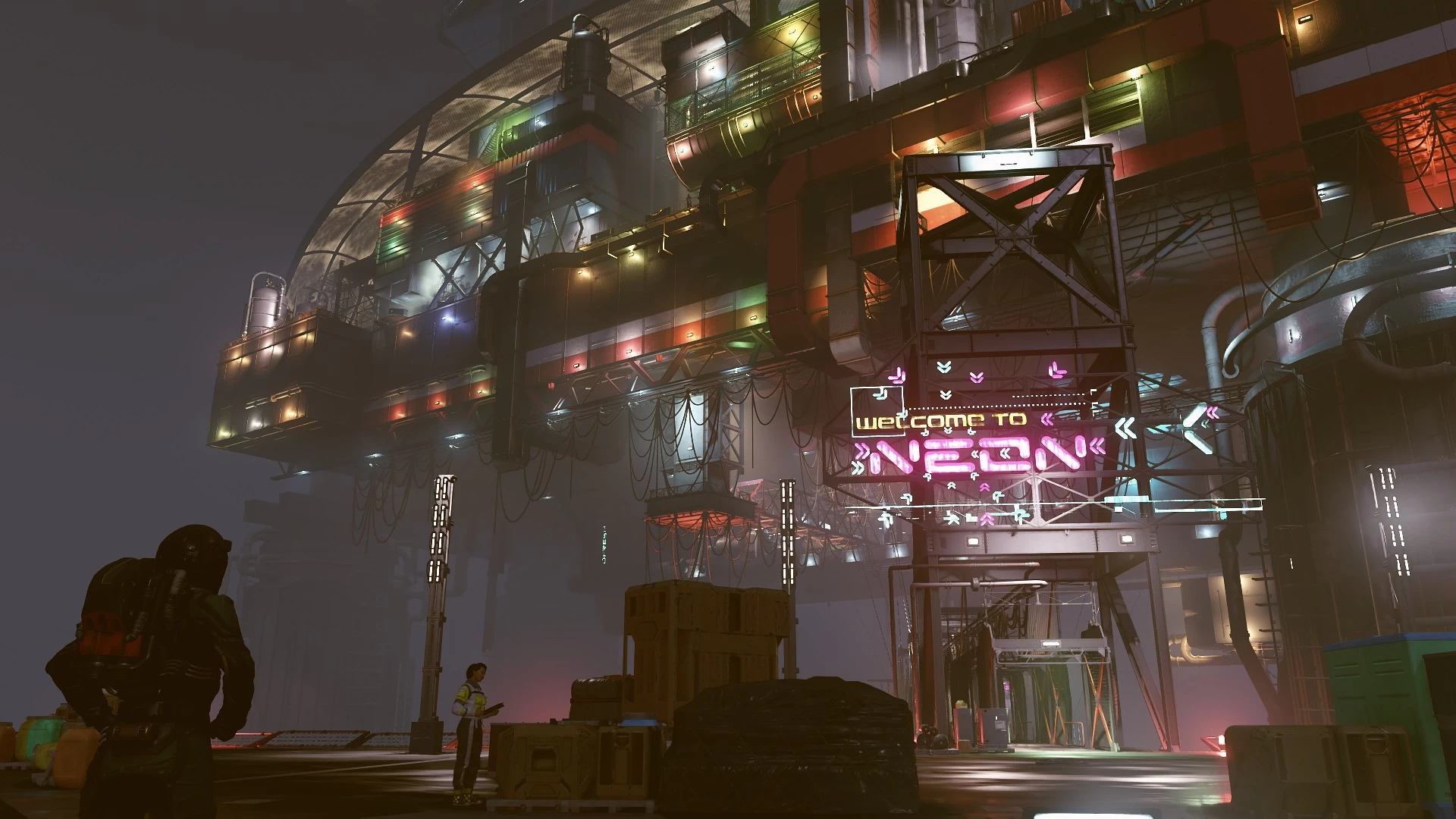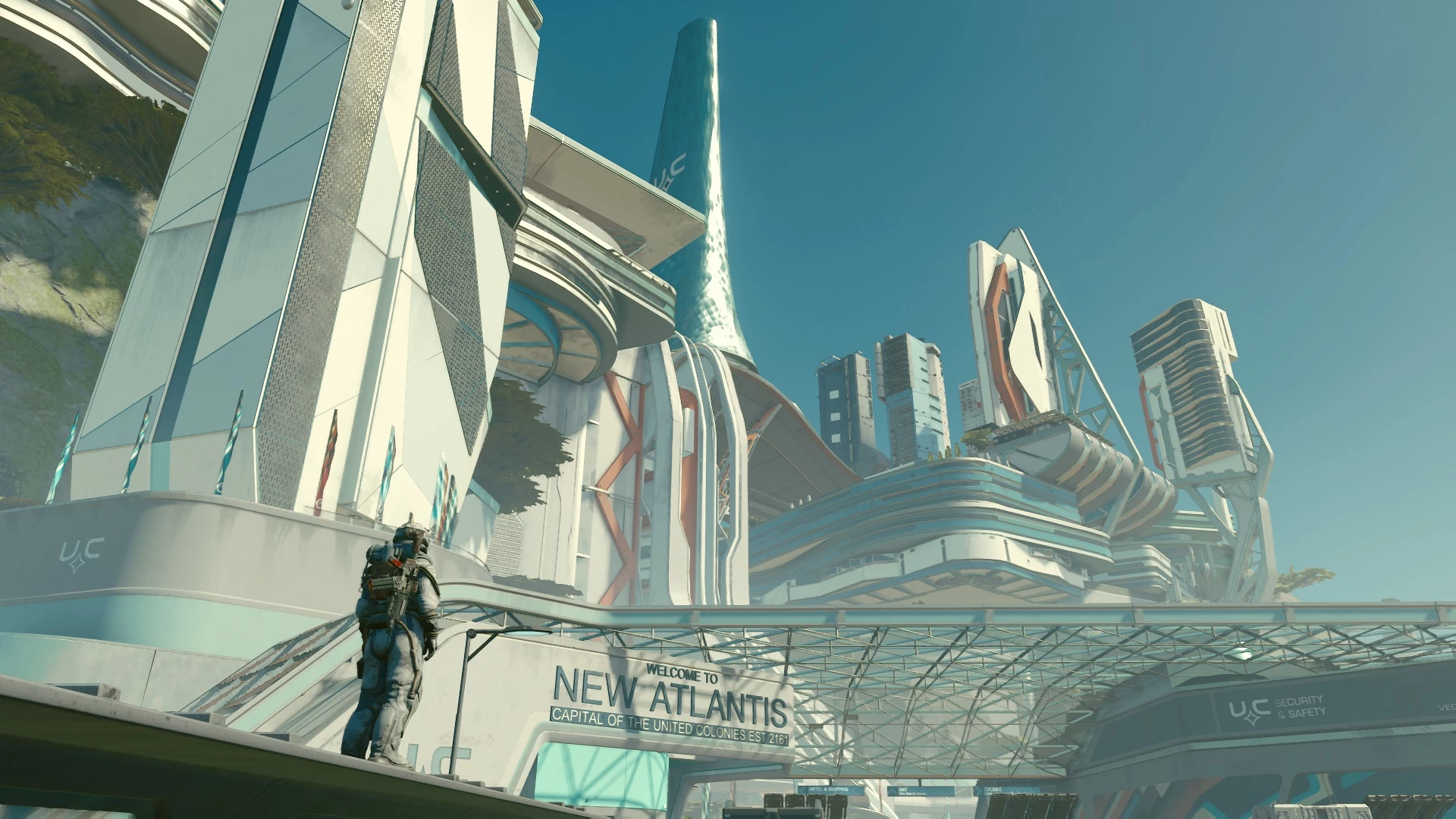 الأمر يختلف تمامًا هنا مع Starfield، فهي مبنية على أحدث نسخة من محرك Creation Engine والتي شهدت تحسينات عملاقة مقارنةً بألعاب الاستوديو الأخيرة Fallout 4 و 76. هذه تجربة جيل جديد بشكلٍ كامل وهذا يظهر من مدى الاهتمام بالتفاصيل في كافة أرجاء اللعبة حتى على الكواكب النائية المُصممة بالتوليد الإجرائي. لكن اللعبة تتألق فعلاً عندما تدخل المدن الضخمة أمثال New Atlantis و Neon وتنظر إلى مدى اهتمام الاستوديو بتقديم تجربة خلابة بصريًا وواقعية.