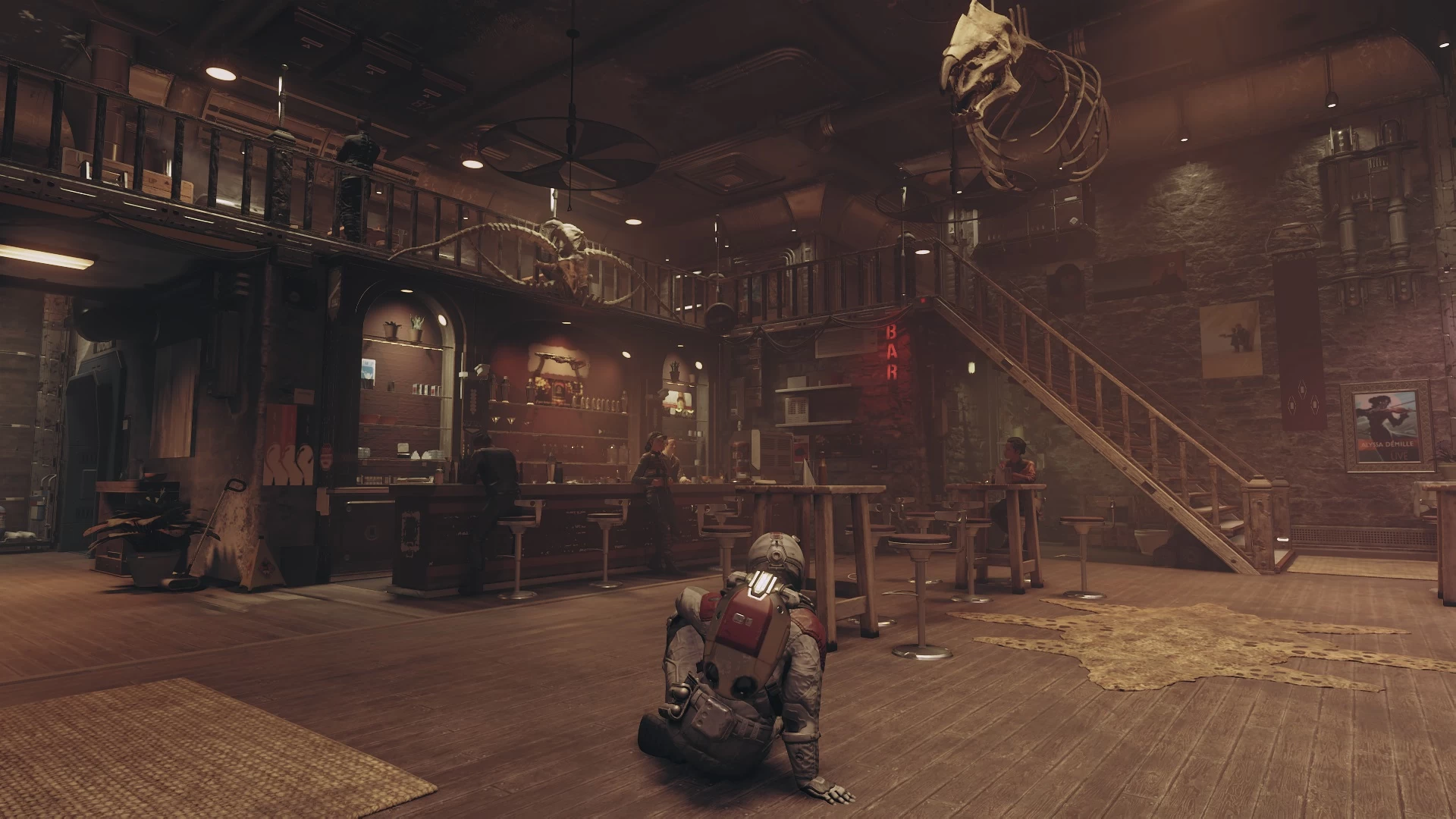 الذكاء الاصطناعي ليس من أكثر نقاط القوة في Starfield، ولكنه تحسن قليلاً عن ألعاب الاستوديو السابقة، وفي بعض الأحيان ستجده يُقدم فعلاً مواجهة أمامك. لا تفهموني خطأ، فالذكاء الاصطناعي هنا لا يزال غبيًا، ولكن ليس بنفس مستوى غباء الذكاء الاصطناعي في Fallout 4 مثلاً، وستجد أن مواجهة الأعداء البشر تتطلب منك الاحتماء وراء حائط أو صندوق واطلاق النيران من خلف جدار الحماية حتى لا تتعرض للأذى بشكلٍ سريع.