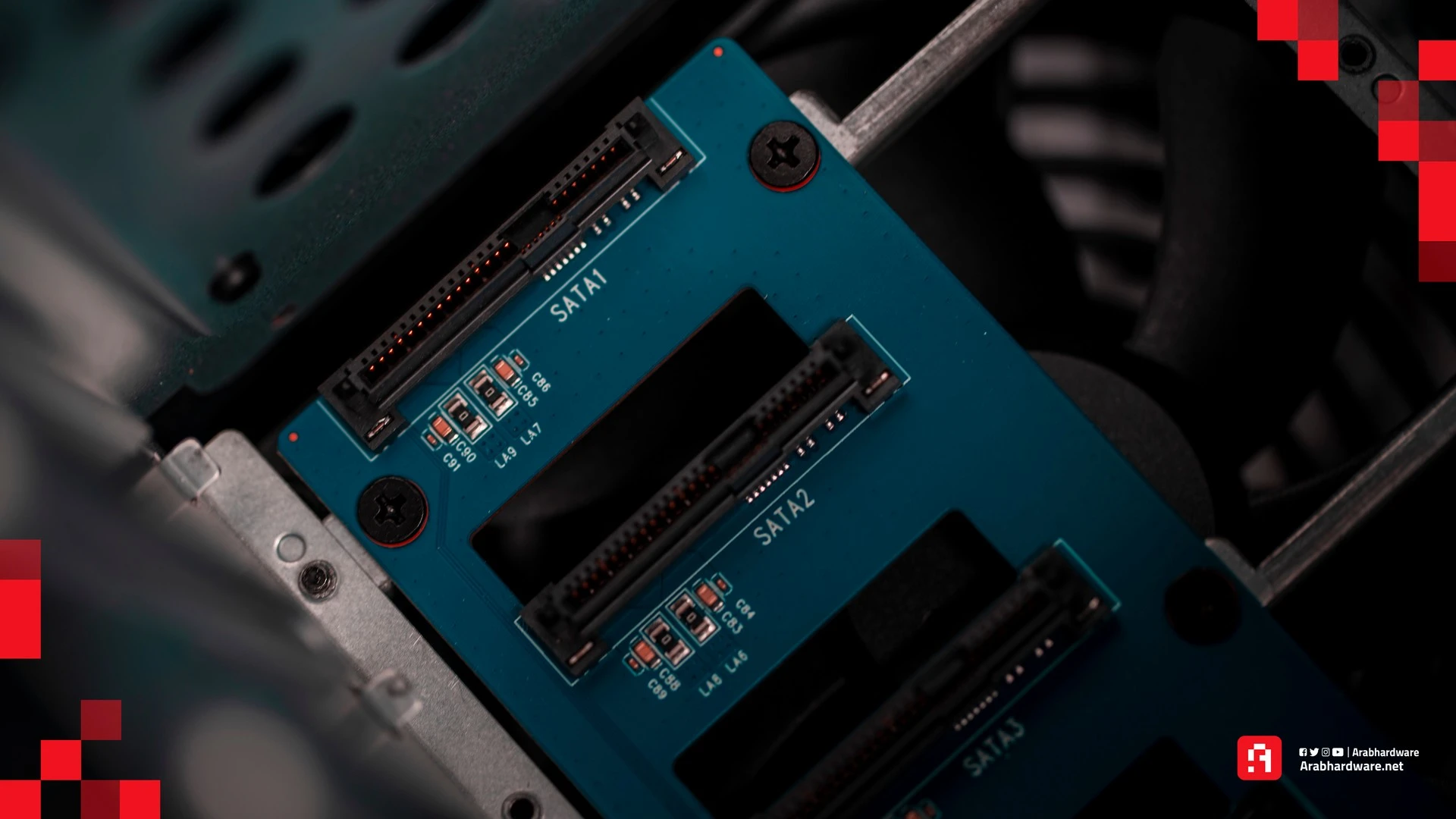 أمّا بالنسبة لوحدات التخزين، فقد اختبرنا وحدتيّ تخزين من فئتي HDD بسعة 500 جيجابايت و M.2 بسعة 1 تيرابايت. بالطبع كان بالإمكان تركيب مساحات تخزينية أكبر من ذلك، ولكنّ اكتفينا بهذه الوحدات لعملية الاختبار.