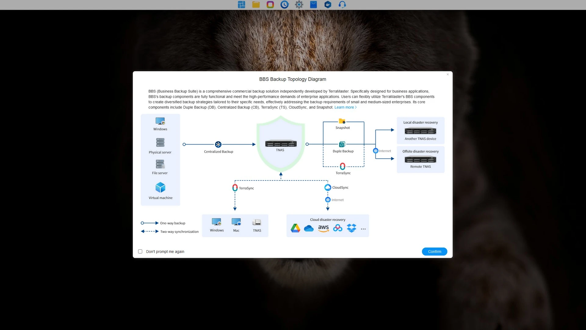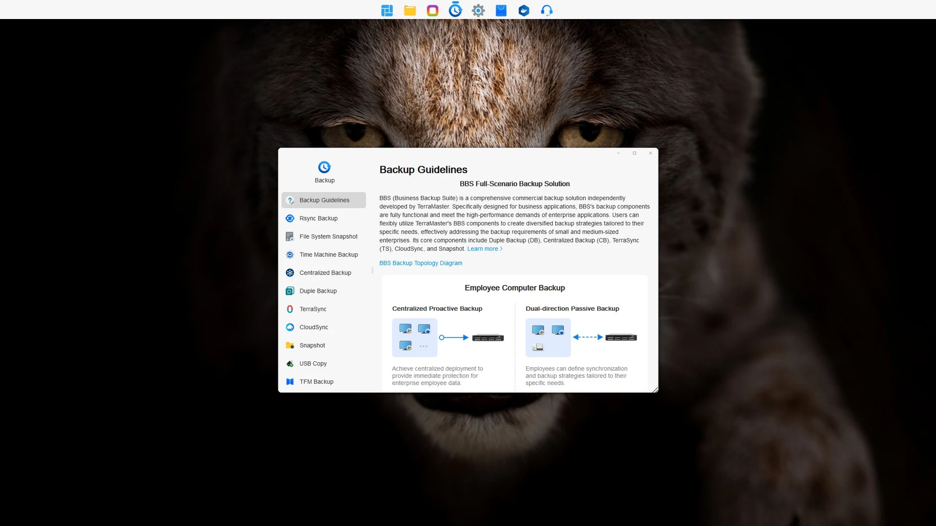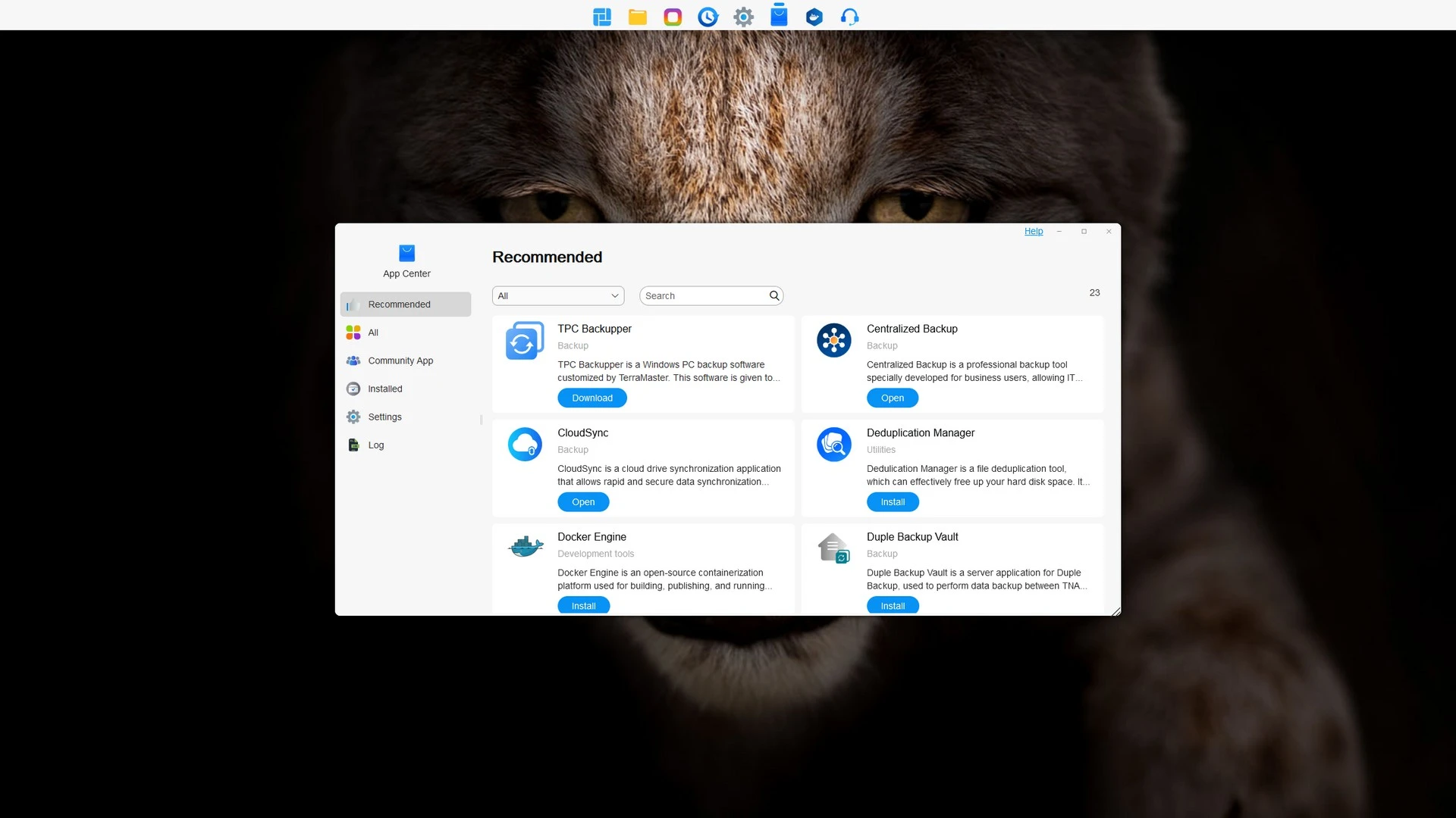 بالنسبة لي، كانت تجربة واجهة التشغيل على المُتصفّح أفضل وأكثر شمولية بالطبع؛ لذا اخترتها للعمل وتحديد الوظائف وغير ذلك من الأمور. حيث تُمكّنك هذه الواجهة من الوصول للكثير من الأدوات، وعرض سطح المكتب الخاص بجهاز TerraMaster نفسه و أيضًا كل شيءٍ آخر، بدايةً من أدوات النسخ الاحتياطي وتطبيقات تصفح الوسائط إلى Docker Engine وphpVirtualBox.