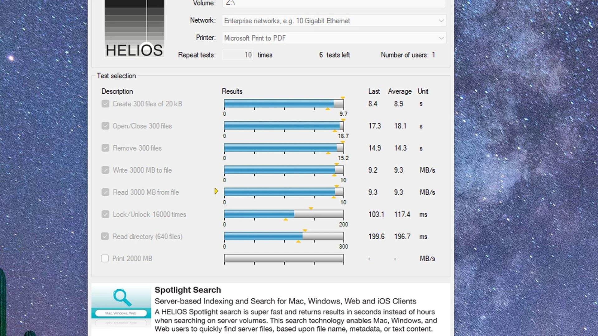 هذا الأمر دفعنا للاستغناء عن هذا الاختبار مع هذا القرص، والانتقال إلى الاختبار الواقعي، عن طريق نقل ملف من اللاب توب إلى جهاز TerraMaster F4-424 Max يدويًا. لم تتجاوز سرعة نقل البيانات مع وحدة التخزين الـHDD متوسط 15MB/s للقراءة والكتابة، وهذه السرعة أيضًا كانت السرعة نفسها التي أظهرتها برامج الاختبار مثل NAS performance tester و Helios LanTest كما نرى من صور النتائج.