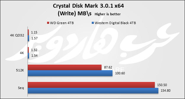 وكمثال على ذلك فيكفي الفارق الكبير في سرعات التشغيل لكلا القرصين والتي تصل فقط في حالة قرص اليوم WD Green 4TB إلى 5400rpm فيما يتفوق WD Black في هذا الأمر وتصل سرعة الدوران للإسطوانات الداخلية إلى 7200rpm....لذلك لا مجال للمقارنة هنا. كذلك الأمر بالنسبة لمن يقارن أداء القرص مع أقراص أخرى مماثلة ذات سعة تخزين 1TB، هذا الأمر عملياً خاطىء تماماً بسبب إختلاف عدد الإسطونات الداخلية بالقرص Platters، فأقراص التخزين بسعة 1TB عادة ما تمتلك Platter واحد فقط يما تأتي أقراص التخزين بسعة 4TB بعدد 4 أو 5 Platters وهو ما يؤثر على سرعات النقل وأزمنة الإستجابة بشكل كبير في هذه الأقراص.