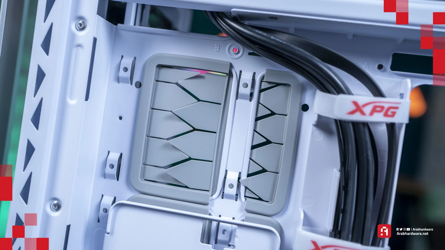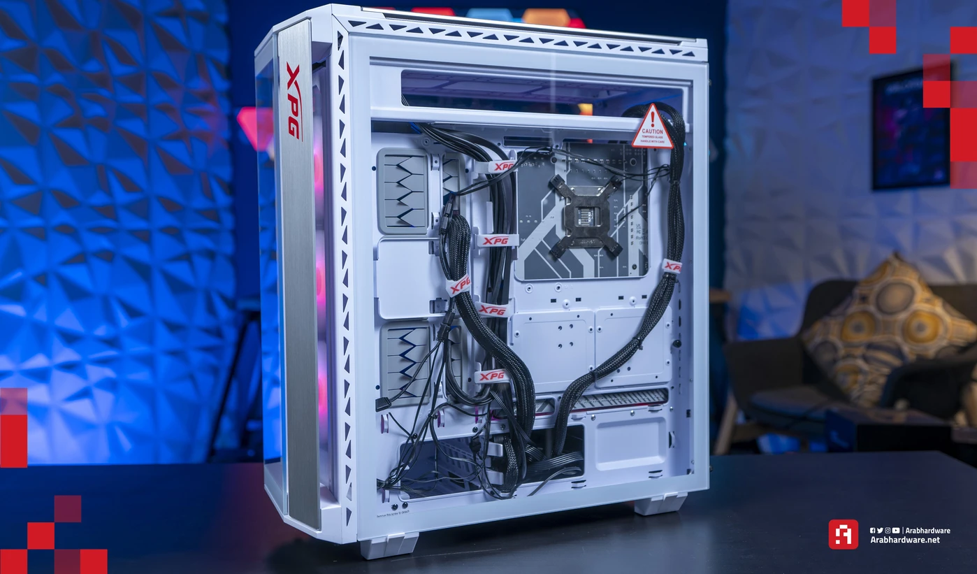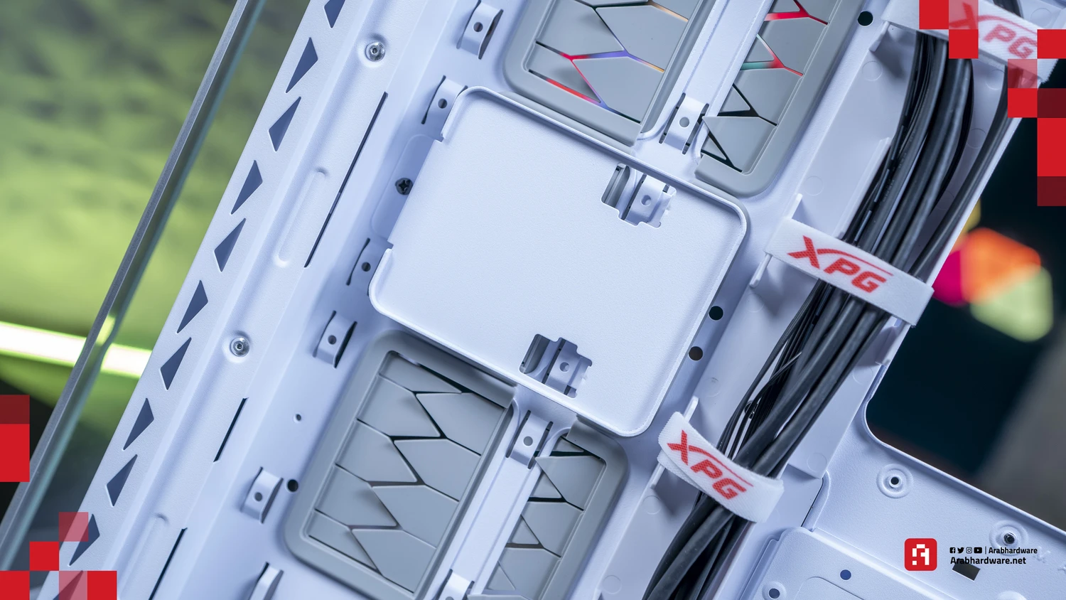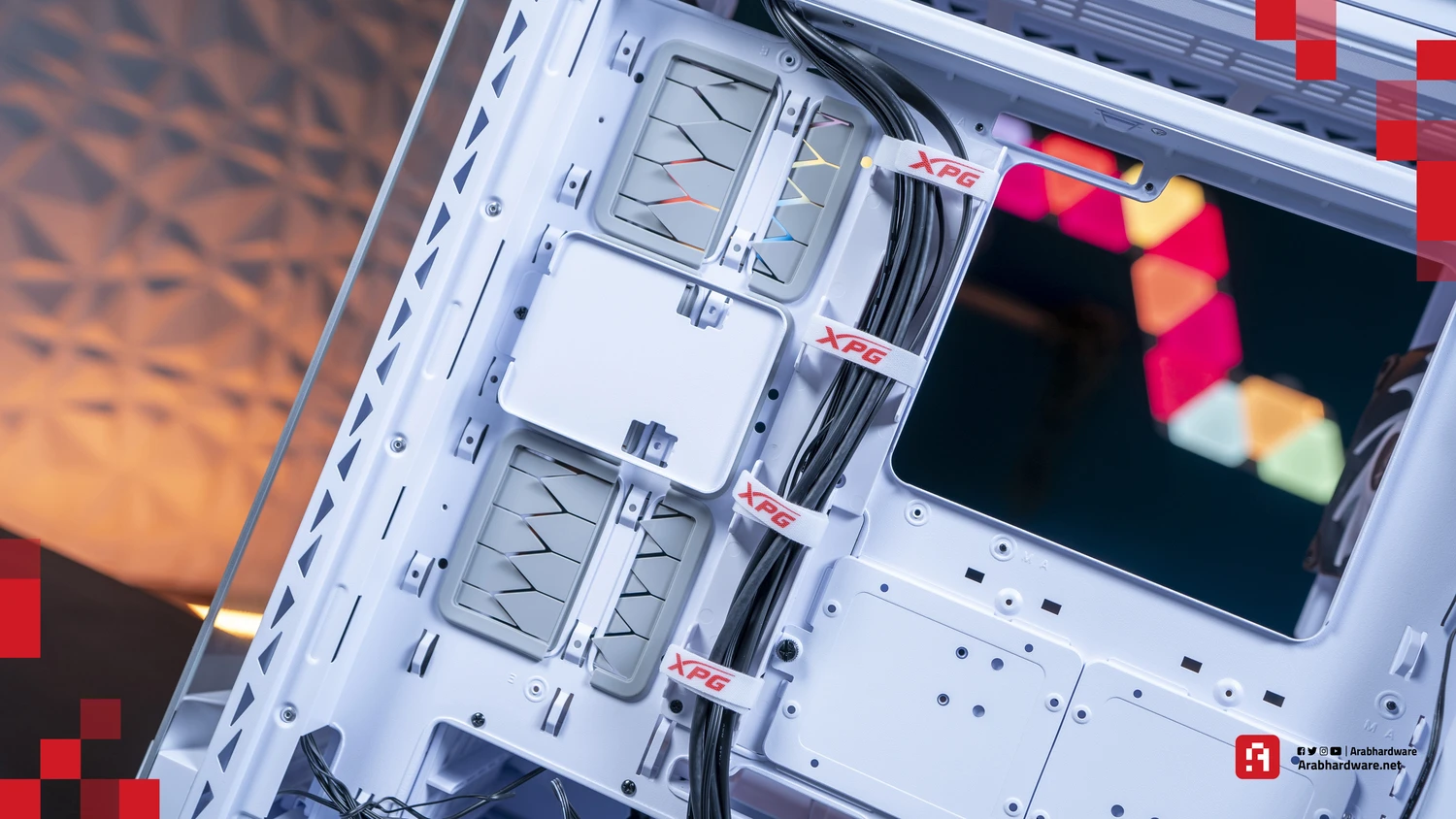 من أبرز المميزات التي لاحظناها في صندوق الحاسب XPG Battlecruiser II هي سهولة عملية التجميع. صُمم الصندوق بمساحة داخلية واسعة تتيح تركيب المكونات وإدارة الكابلات بسلاسة وبدون أي عوائق. بالإضافة إلى ذلك، فإن التصميم الداخلي، مع وجود أماكن مخصصة لإخفاء الكابلات وتحسين تدفق الهواء، يساهم في تبريد المكونات بشكلٍ فعال، لا سيما مع مراوح الـ ARGB التي يمكن التحكم في سرعتها وإضاءتها، والمبردات التي يمكن إضافتها.